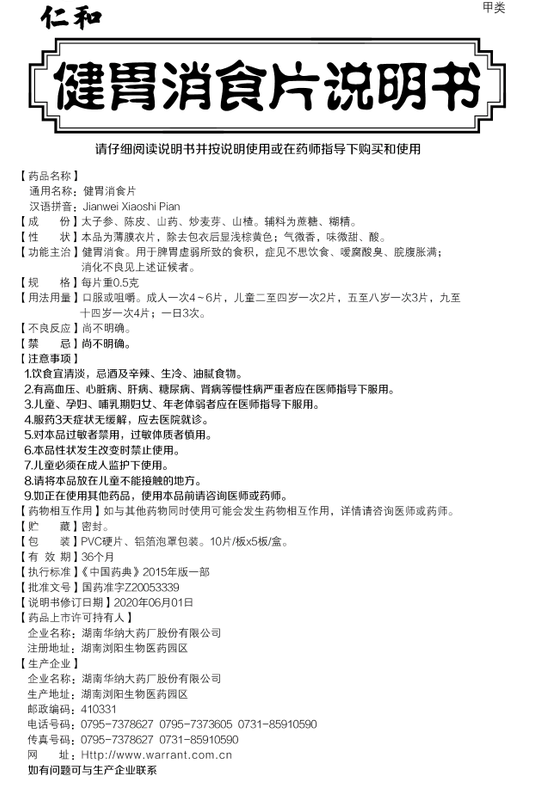 健胃消食。用于脾胃虛弱所致的食積,癥見不思飲食、噯腐酸臭、脘腹脹滿;消化不良見上述證候者。